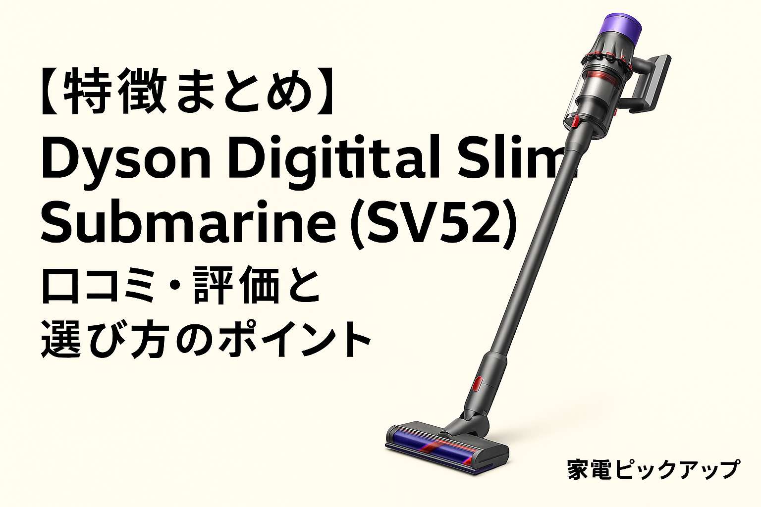 この記事では、Dysonの軽量&水拭き対応モデル「Digital Slim Submarine(SV52 SU)」について、特徴・口コミ評価・どんな場面で使いやすいかをまとめています。軽くてパワフル、さらにモップ機能も備えた注目の1台です。