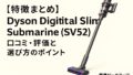 同じTinecoの「Floor One Stretch 180°」が軽量で家具下の掃除に強いのに対し、S5 Comboは水拭き対応が最大の違いです。水拭き不要ならStretch 180°、効率を最優先するならS5 Comboが適しています。また、Dyson V15 Detectのようなハイパワー機種と比べると、S5 Comboはパワーよりも“便利さ”で勝負している印象です。